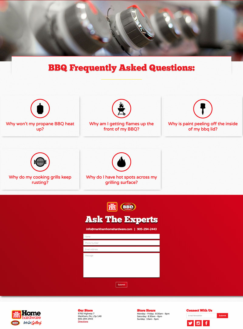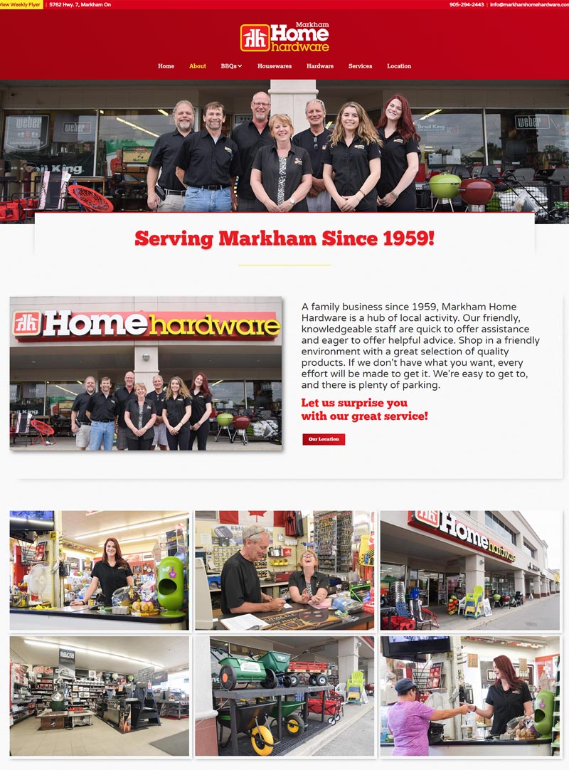 Markham Home Hardware offers everything that your local home hardware does, but they are also the local BBQ Experts. The extensive line of BBQ products, and expertise separates Markham Home Hardware from the rest, so we split the website into two lanes; in-store products & specials, and a selection of BBQ pages, with an online catalog and reservation system to shop online.